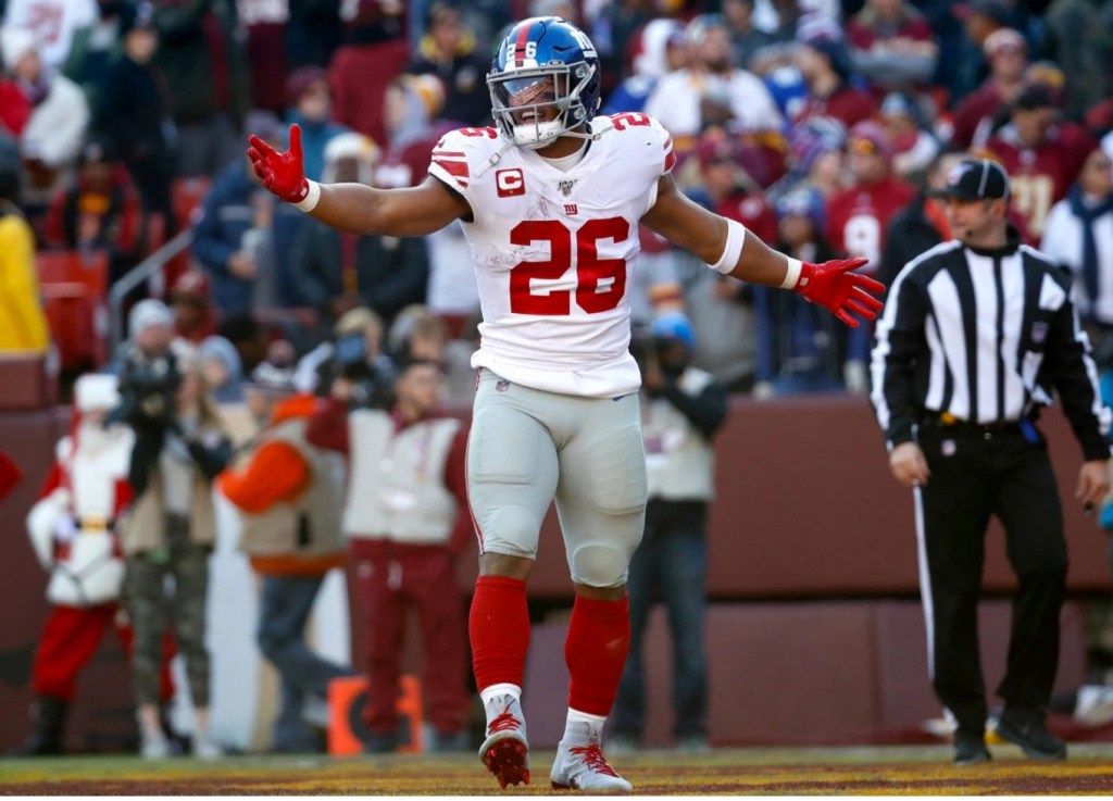 The Penn State product dazzled during his rookie campaign after New York selected him with the second overall pick in 2018. He led the league with 2,028 scrimmage yards and added 15 total touchdowns on his way to being named the Offensive Rookie of the Year.