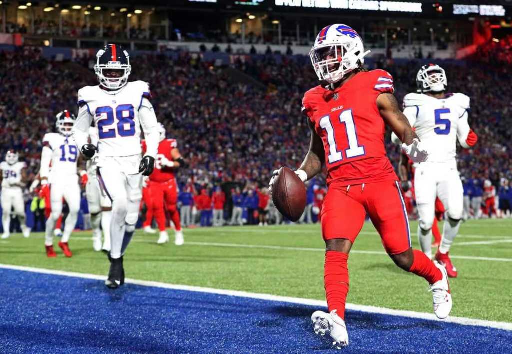 Josh Allen finished throwing 19-of-30 for 169 yards with two touchdowns and an interception in the win for Buffalo. James Cook had 71 yards on 14 carries on the ground, and Stefon Diggs had 100 receiving yards on 10 catches.