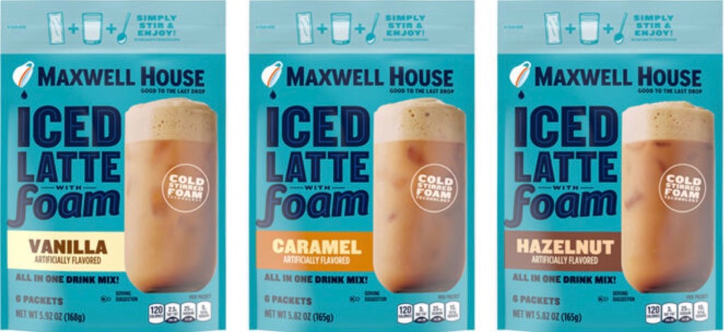 Starting July 26, 2023, Maxwell House Iced Latte with Foam will be available in the instant section of the coffee aisle at grocery stores nationwide for a suggested price of $6.99, which includes six 1-oz sachets.