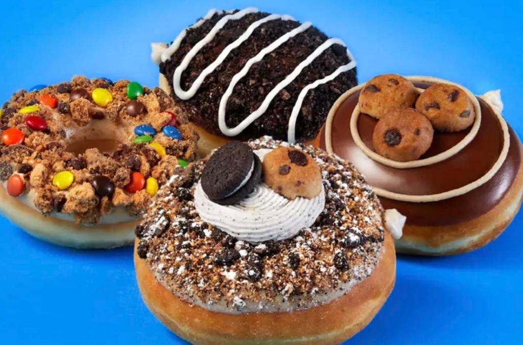 - New Buddy Makes Breakfast Doughnut: Original Glazed Doughnut topped with cake batter spaghetti buttercreme, milk chocolate colorful candies, sprinkles, and a maple drizzle.