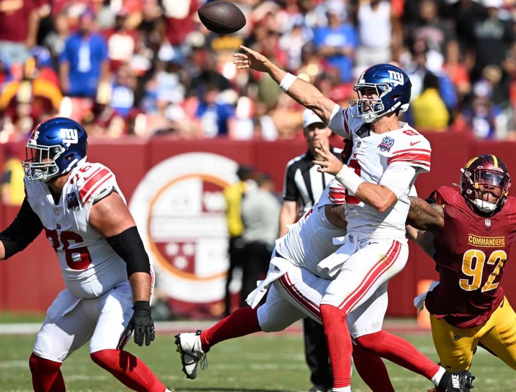 The New York Giants were defeated, 21-18, by the Washington Commanders at Northwest Stadium on Sunday.