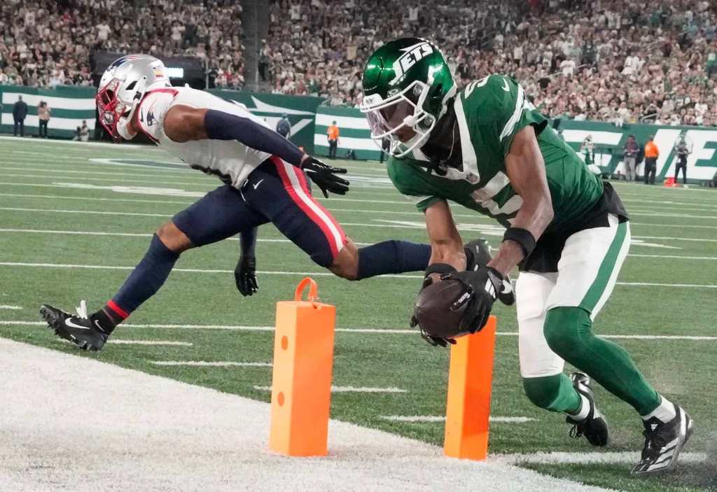 Aaron Rodgers, Jets Dominate Patriots Posted on September 21, 2024 by news staff Aaron Rodgers dazzled the MetLife Stadium crowd with uncanny accuracy and an array of off-platform throws, passing for 281 yards and two touchdowns in the Jets’ second straight win. Aaron Rodgers Leads Jets Over Patriots 24-3 Share this: Click to share on X (Opens in new window) X Click to share on Facebook (Opens in new window) Facebook