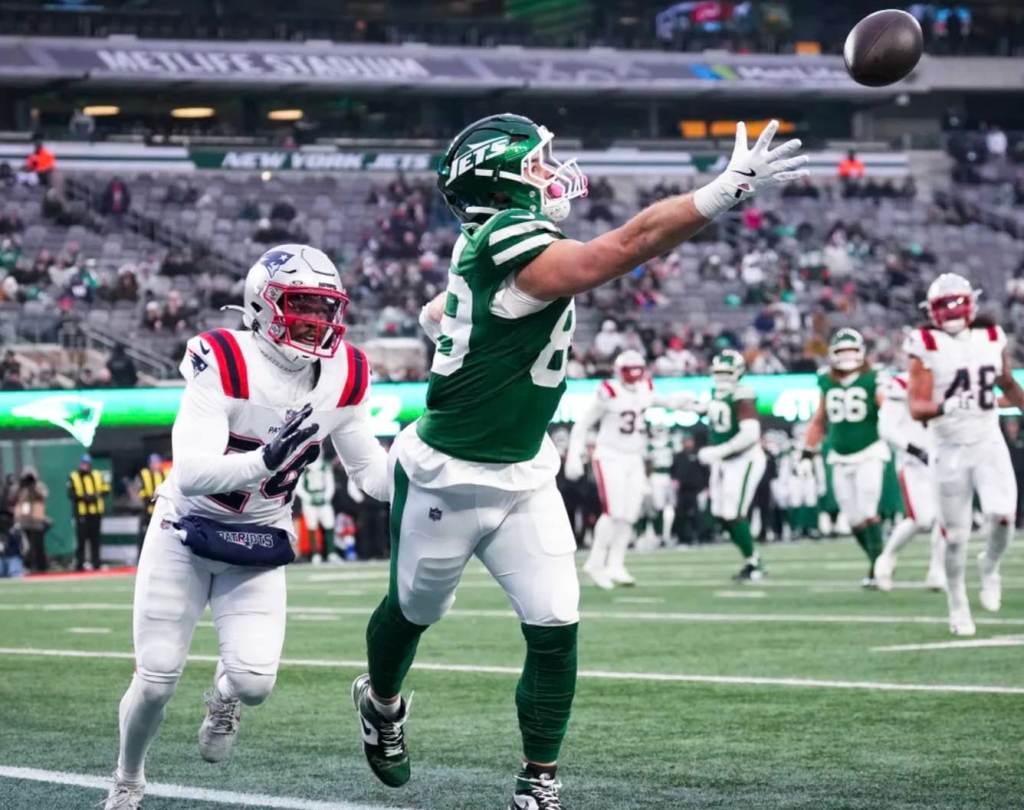 New England Patriots quarterback Drake Maye set a career high throwing five passing touchdowns against the New York Jets in a nearly perfect performance.